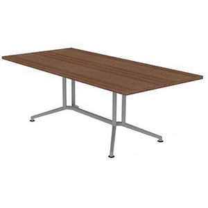 Vergadertafel rechthoekig blad lengte 200 cm, Hoogte: 720 cm, Breedte: 210 cm, Vorm: Rechthoek, Tafelblad kleur: Noten, Onderstel kleur: Zilver, Selectie telewerken: nee, Onderstel materiaal: Staal