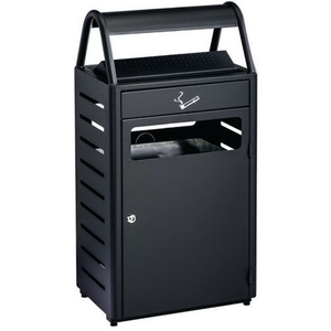 Met epoxy poedercoating voor gebruik buitenshuis. Binnenemmer van gegalvaniseerd staal met handvat (afmetingen 380 x 270 x 380). Asbak en afvalbak geblokkeerd door het deurtje vooraan. Veilig slot met driehoekige sleutel. Met kunststof voetjes om de vloer te beschermen. Vandalismebestendig. 2 vloerbevestigingspunten (schroefwerk meegeleverd).