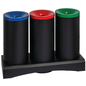 Set bestaande uit drie vuurbestendige afvalbakken en een basis. Bak, deksel en basis van staal met epoxy poedercoating. Gekleurde deksels om afval gemakkelijk te sorteren. Brandwerende deksels om ontbranding en verspreiding van vuur te voorkomen.