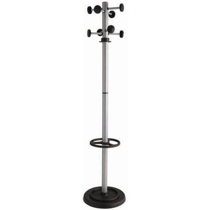 Kapstok Sofia, Materiaal: Staal, Aantal haken: 8, Kleur: Grijs/zwart, Type: Kapstok, Hoogte: 175 cm, Materiaal: Staal, Jashaak kleur: Zwart, Jashaak materiaal: Polypropyleen, Gewicht: 4200 g, Onderstel: Op sokkel, Diepte: 39 cm