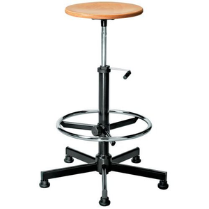 Werkkruk, hoog Primo, Stoel model: Hoog, Voetensteun: ja, Kleur: Beuken, Zitting materiaal: Beuk, Onderstel materiaal: Acryl, Zitting Ø: 340 mm, Min. zithoogte: 680 mm, Max. zithoogte: 830 mm, Max. belasting: 80 kg, Zithoogte verstelling: ja