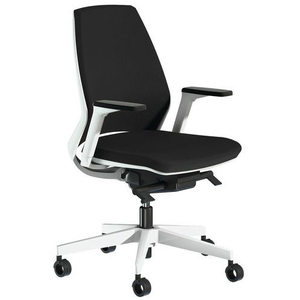Bureaustoel met middelhoge rugleuning en Oxygen verstelbare armleggers, Met armleggers: ja, Type voet: Wielen, Zitting materiaal: Doek, Hoofdsteun: nee, Mechanisme: Synchroon, Type stoel: Stoel, Type rugleuning: Middelhoog, Onderstel kleur: Wit, Rug kleur: Zwart, Kleur: Zwart, Rughoogte: 53 cm, Zitbreedte: 49 cm, Armleuning instellen: In hoogte, breedte en diepte, Zitdiepte: 49 cm, Min. zithoogte: 43 cm, Max. zithoogte: 56 cm, Dichtheid schuimzitting: 50 kg/m³, Dichtheid schuimrug: 50 kg/m³, Rugleuning materiaal: Gevoerde vulling, Zwenkwiel Ø: 65 mm, Selectie telewerken: nee, Onderstel materiaal: Nylon, Stapelbaar: nee, Type onderstel: Op wielen, Rugbreedte: 46 cm, Brandveiligheid: M1