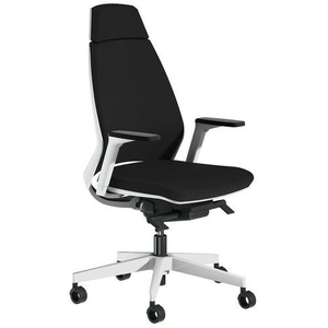 Bureaustoel met hoge rugleuning en Oxygen verstelbare armleggers, Met armleggers: ja, Type voet: Wielen, Zitting materiaal: Doek, Hoofdsteun: ja, Mechanisme: Synchroon, Type stoel: Stoel, Type rugleuning: Hoog, Onderstel kleur: Wit, Rug kleur: Zwart, Kleur: Zwart, Rughoogte: 66 cm, Zitbreedte: 49 cm, Armleuning instellen: In hoogte, breedte en diepte, Zitdiepte: 49 cm, Min. zithoogte: 43 cm, Max. zithoogte: 56 cm, Dichtheid schuimzitting: 50 kg/m³, Dichtheid schuimrug: 50 kg/m³, Rugleuning materiaal: Stof, Zwenkwiel Ø: 65 mm, Selectie telewerken: nee, Onderstel materiaal: Nylon, Stapelbaar: nee, Type onderstel: Op wielen, Rugbreedte: 46 cm, Brandveiligheid: M1