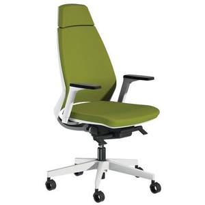 Bureaustoel met hoge rugleuning en Oxygen verstelbare armleggers, Met armleggers: ja, Type voet: Wielen, Zitting materiaal: Doek, Hoofdsteun: ja, Mechanisme: Synchroon, Type stoel: Stoel, Type rugleuning: Hoog, Onderstel kleur: Wit, Rug kleur: Groen, Kleur: Groen, Rughoogte: 66 cm, Zitbreedte: 49 cm, Armleuning instellen: In hoogte, breedte en diepte, Zitdiepte: 49 cm, Min. zithoogte: 43 cm, Max. zithoogte: 56 cm, Dichtheid schuimzitting: 50 kg/m³, Dichtheid schuimrug: 50 kg/m³, Rugleuning materiaal: Stof, Zwenkwiel Ø: 65 mm, Selectie telewerken: nee, Onderstel materiaal: Nylon, Stapelbaar: nee, Type onderstel: Op wielen, Rugbreedte: 46 cm, Brandveiligheid: M1