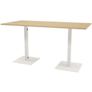 Vergadertafel hoog Greko met witte poot, Type onderstel: Plint, Hoogte: 107 cm, Breedte: 100 cm, Totale diepte: 100 cm, Vorm: Rechthoek, Tafelblad materiaal: Gemelamineerd, Tafelblad kleur: Eiken, Totale lengte: 210 cm, Rand materiaal: ABS, Selectie telewerken: nee, Eco-verantwoordelijke aanpak: ja, Type: Vergadertafel, Dikte tafelblad: 30 mm, RAL: 9016, FSC licentie: ja
