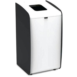 Stalen kast met poedercoating. 'Classic' versie: gekleurde frontplaat en zwarte zijkanten. Geïntegreerd zakhoudersysteem. Opent via de bovenste deur: ideaal voor het creëren van sorteereilanden. Optioneel: set van 4 wielen Ø 40 mm (2 met rem). Optioneel: voorgesneden vinyllabels om afval te sorteren.