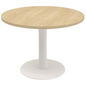 Ronde vergadertafel, Type onderstel: Centrale, Hoogte: 73 cm, Breedte: 100 cm, Totale diepte: 100 cm, Vorm: Rond, Tafelblad materiaal: Gemelamineerd, Tafelblad kleur: Eiken, Vermogen (aantal personen): 4, Onderstel kleur: Wit, Tafel Ø: 100 cm, Rand materiaal: ABS, Montage: Zelfbouw, Totale breedte: 100 cm, Selectie telewerken: nee, Onderstel materiaal: metaal, Gewicht: 36.5 kg, Stapelbaar: nee, Type: rond, Dikte tafelblad: 30 mm, Tafelbreedte: 100 cm