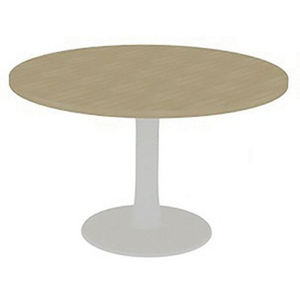 Vergadertafel met rond blad diameter 120 cm, Type onderstel: Centrale, Hoogte: 73 cm, Breedte: 120 cm, Totale diepte: 120 cm, Vorm: Rond, Tafelblad materiaal: Gemelamineerd, Tafelblad kleur: Eiken, Onderstel kleur: Wit, Tafel Ø: 120 cm, Selectie telewerken: nee, Onderstel materiaal: Staal, Eco-verantwoordelijke aanpak: ja, FSC licentie: ja