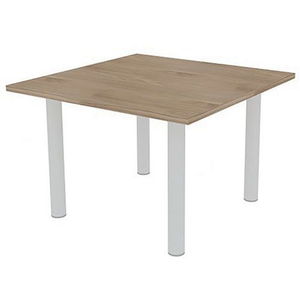 Vergadertafel met vierkant blad 110x110 cm, Type onderstel: 4 poten, Hoogte: 73 cm, Breedte: 110 cm, Totale diepte: 110 cm, Vorm: Vierkant, Tafelblad materiaal: Hardboard, Tafelblad kleur: Lep, Vermogen (aantal personen): 4, Onderstel kleur: Wit, Selectie telewerken: nee, Onderstel materiaal: Staal, Type: Vergadertafel