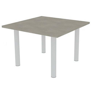 Vergadertafel met vierkant blad 110x110 cm, Type onderstel: 4 poten, Hoogte: 73 cm, Breedte: 110 cm, Totale diepte: 110 cm, Vorm: Vierkant, Tafelblad materiaal: Hardboard, Tafelblad kleur: Donkergrijs, Vermogen (aantal personen): 4, Onderstel kleur: Wit, Selectie telewerken: nee, Onderstel materiaal: Staal, Type: Vergadertafel