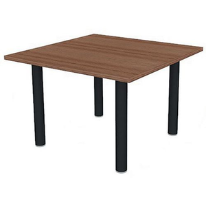 Vergadertafel met vierkant blad 110x110 cm, Type onderstel: 4 poten, Hoogte: 73 cm, Breedte: 110 cm, Totale diepte: 110 cm, Vorm: Vierkant, Tafelblad materiaal: Hardboard, Tafelblad kleur: Noten, Vermogen (aantal personen): 4, Onderstel kleur: Donkergrijs, Selectie telewerken: nee, Onderstel materiaal: Staal, Type: Vergadertafel