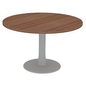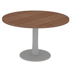 Vergadertafel met rond blad diameter 120 cm, Type onderstel: Centrale, Hoogte: 73 cm, Breedte: 120 cm, Totale diepte: 120 cm, Vorm: Rond, Tafelblad materiaal: Gemelamineerd, Tafelblad kleur: Noten, Onderstel kleur: Grijs, Tafel Ø: 120 cm, Selectie telewerken: nee, Onderstel materiaal: Staal