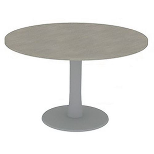 Vergadertafel met rond blad diameter 120 cm, Type onderstel: Centrale, Hoogte: 73 cm, Breedte: 120 cm, Totale diepte: 120 cm, Vorm: Rond, Tafelblad materiaal: Gemelamineerd, Tafelblad kleur: Grijs/zilver, Onderstel kleur: Zilver, Tafel Ø: 120 cm, Selectie telewerken: nee, Onderstel materiaal: Staal, Eco-verantwoordelijke aanpak: ja, FSC licentie: ja