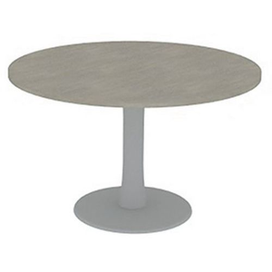 Vergadertafel met rond blad diameter 120 cm, Type onderstel: Centrale, Hoogte: 73 cm, Breedte: 120 cm, Totale diepte: 120 cm, Vorm: Rond, Tafelblad materiaal: Gemelamineerd, Tafelblad kleur: Grijs/zilver, Onderstel kleur: Grijs, Tafel Ø: 120 cm, Selectie telewerken: nee, Onderstel materiaal: Staal