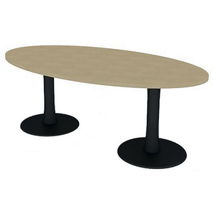 Vergadertafel, ovaal blad lengte 200 cm 2 poten, Hoogte: 730 cm, Breedte: 200 cm, Vorm: Ovaal, Tafelblad kleur: Eiken, Onderstel kleur: Antraciet, Selectie telewerken: nee, Onderstel materiaal: Staal