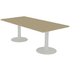Vergadertafel rechthoekig blad 210x100 cm, 2 poten, Hoogte: 730 cm, Breedte: 210 cm, Vorm: Rechthoek, Tafelblad kleur: Eiken, Onderstel kleur: Wit, Selectie telewerken: nee, Onderstel materiaal: Staal