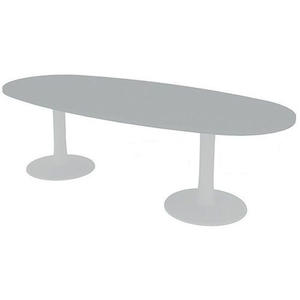 Vergadertafel ovaal blad lengte 240 cm 2 poten, Hoogte: 730 cm, Breedte: 240 cm, Vorm: Ovaal, Tafelblad kleur: Grijs, Onderstel kleur: Wit, Selectie telewerken: nee, Onderstel materiaal: Staal