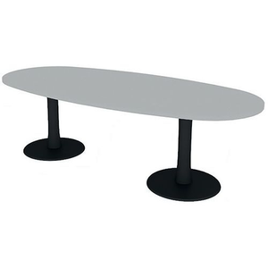Vergadertafel ovaal blad lengte 240 cm 2 poten, Hoogte: 730 cm, Breedte: 240 cm, Vorm: Ovaal, Tafelblad kleur: Grijs, Onderstel kleur: Antraciet, Selectie telewerken: nee, Onderstel materiaal: Staal
