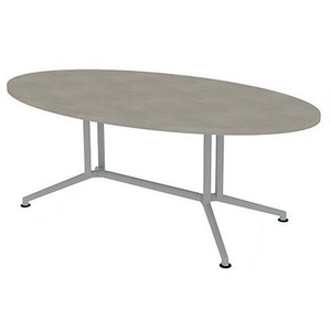 Vergadertafel met ovaal blad lengte 200 cm, Hoogte: 720 cm, Breedte: 200 cm, Vorm: Ovaal, Tafelblad kleur: Grijze eik, Onderstel kleur: Zilver, Selectie telewerken: nee, Onderstel materiaal: Staal, Eco-verantwoordelijke aanpak: ja, FSC licentie: ja