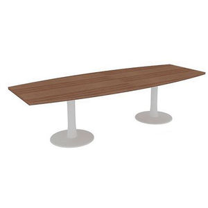 Vergadertafel Tonvormig lengte 280 cm, Type onderstel: 2 poten, Hoogte: 73 cm, Breedte: 280 cm, Totale diepte: 110 cm, Vorm: Tonvormig, Tafelblad kleur: Noten, Vermogen (aantal personen): 8, Onderstel kleur: Wit, Selectie telewerken: nee, Onderstel materiaal: Staal, Gewicht: 98.1 kg