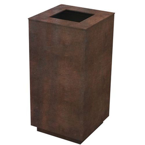 Afvalbak gemaakt van cortenstaalplaat, ontworpen om zeer lang mee te gaan zonder enige vorm van onderhoud. Aangezien er geen nabewerking nodig is, worden vervuilende processen vermeden, wat bijdraagt tot een duurzaam milieu. Opmerking: De oxidatie van staal zal zich in de loop van de tijd ontwikkelen en zal meer of minder snel gaan, afhankelijk van de omgevingstemperatuur en de vochtigheidsgraad. Te bevestigen op harde ondergrond door voegen