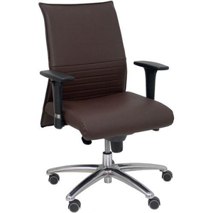 Bureaustoel Albacete van imitatieleer - Piqueras y crespo. Synchro-mechanisme met spanningsregelaar. In hoogte verstelbare armen met standaard verchroomde afwerking. De zitting en rugleuning zijn bekleed in de stof en kleur van uw keuze. Voet van zeer sterk gepolijst aluminium met 5 spaken en een diameter van 70 cm.