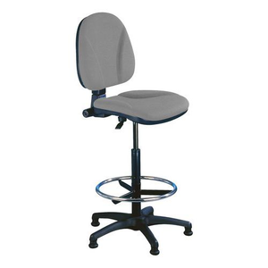 Gestoffeerde werkstoel met in hoogte verstelbare schoenen. hoes van recyclebaar acryl. Met voetensteun. Draagvermogen: 120 kg.