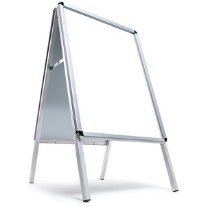 Het A-model stoepbord is een excellente manier om de aandacht van uw voorbijgangers te vangen. De kliklijst maakt een makkelijke posterwissel mogelijk. Ze zijn ideaal voor hotels, detaillisten, restaurants, cafés, evenementen, makelaars enz . Excellente stabiliteit door de aluminium poten. UV-stabiele-en ontspiegelde posterhouder beschermen uw posters tegen verkleuren. Met diverse profielen en in diverse maten. Hoge kwaliteit en daardoor lange levensduur .