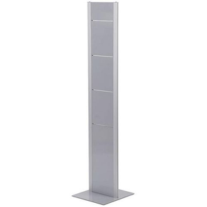 Vrijstaande folderstandaard met of zonder legplanken, Aantal vakken/kolom: 4, Kleur: Zilver, Voor formaat: 210 x 297 mm (A4), Hoogte: 166.5 cm, Breedte: 370 mm, Type: Folderstandaard zonder legplanken, Materiaal: Aluminium, Gewicht: 9.87 kg, Legbord materiaal: Metaal
