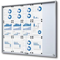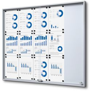 Binnenvitrine met magnetische achterwand, SLIM. Metalen bodem van goede kwaliteit, te gebruiken voor magneten en markers. Schuifdeuren van veiligheidsglas. Dun en schoon ontwerp.