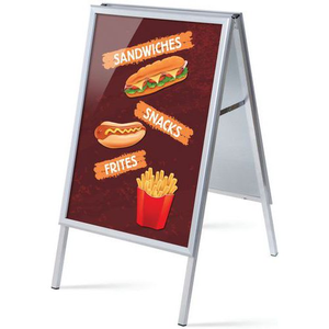 Compleet A-bord met print design. Standaard print design. Premium posterpapier A1 formaat 135 g/m2. Geschikt voor binnen en overdekte buitenruimtes.