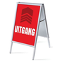 Laat met een A-bord zien waar de uitgang is. Perfect te gebruiken in overdekte openbare ruimtes of tijdens beurzen en evenementen. Een eenvoudig, praktisch en opvallend reclamemiddel. Het A-bord is een aluminium constructie in de vorm van een letter ‘A’, met een 32 mm dik profiel, dat duurzaam, roestvrij en stabiel is. Geschikt voor binnengebruik en overdekte buitenruimtes en verkrijgbaar in A1 formaat. Een uitstekende manier om de aandacht van voorbijgangers te trekken. .