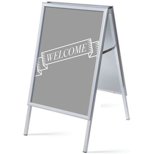 Stoepbord A1 compleet, Aantal vakken/kolom: 1, Kleur: Grijs, Frame materiaal: Aluminium, Voor formaat: 594 x 841 mm (A1), Hoogte: 109.4 cm, Breedte: 63.9 cm, Diepte: 74.4 cm, Gerecyclede verpakkingen: 75 %, Richting: Portret, Gewicht: 9.35 kg