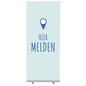 Roll-Banner Budget 85 Complete Set Hier Melden, Aantal vakken/kolom: 1, Kleur: Blauw, Voor formaat: 850 x 2000 mm, Hoogte: 2080 mm, Breedte: 870 mm, Gewicht: 2.8 kg