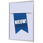 Laat zien dat jouw bedrijf of jouw producten nieuw zijn. Ideaal te gebruiken in de retail. Een perfect reclamemiddel dat bij elk budget past. De kliklijst is een elegante zilverkleurige posterlijst met een profielbreedte van 25 mm. Verkrijgbaar in A1 formaat. Verwissel jouw poster heel eenvoudig en snel zonder de lijst van de muur te halen. .