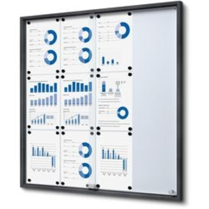 Vergrendelbare vitrine met schuifdeuren, Aantal vellen A4: 12, Lean Management: nee, Bodem materiaal: Aluminium, Magnetisch: ja, Deurmateriaal: Warmte-gehard glas, Deur openingstype: Schuifdeur, Aantal deuren: 1, Hoogte: 94.8 cm, Breedte: 90.6 cm, Diepte: 5 cm, Type bodem: Gesloten, Kleur: Zwart, Nuttige breedte: 90.6 cm, Gerecyclede verpakkingen: 75 %, Gewicht: 17.4 kg, Bord kleur: Wit