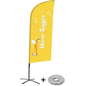 Complete Beach Flag set met print en kruisvoet en water tank. Meest populaire Beach Flag. Standaard print design. B1 brandwerend.