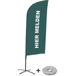 Complete Beach Flag set met print en kruisvoet en watertank. Meest populaire Beach Flag. Standaard print design. B1 brandwerend.