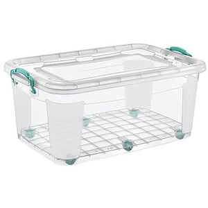 Multibox met wanden en versterkte gladde bodem met honingraatmotief. Praktisch, eenvoudig te reinigen en geschikt voor de vaatwasser. Voorzien van een veiligheidssluiting met vast te klikken handgrepen aan de zijkant. Aangepast overkappend deksel.