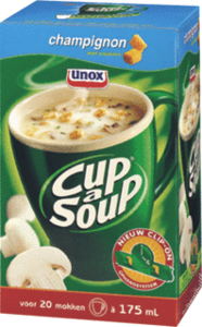 Unox drank, dranksoort instant soep, fysieke vorm poeder, smaken champignon crème
