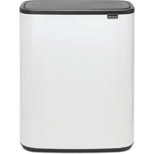 Afvalbak Touch Bin Bo 2x30 ltr, Brabantia, Totale inhoud: 60 L, Materiaal: Kunststof, Body kleur: Wit, Kleur: Wit, Deksel kleur: Donkergrijs, Hoogte: 65.6 cm, Breedte: 54.5 cm, Lengte: 31.2 cm, Type deksel: Soft-Touch open- en sluitsysteem, Model: VB 221408, Type: Afvalbak, Gescheiden afvalinzameling: ja