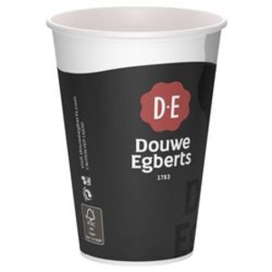 Douwe Egberts papieren bekers. Capaciteit: 180cc. Afmetingen: 620 x 71 mm (hxb). Kleur: wit. Hoeveelheid: 2000 stuks