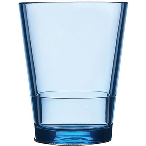Glas flow 200 ml, Totale inhoud: 200 mL, Materiaal: Styreen-acrylonitril (SAN), Kleur: Blauw, Type: Flow, Breedte: 80 mm, Lengte: 80 mm, Totale hoogte: 100 mm, Gewicht: 76 g
