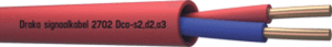 Draka 2700 BM data- en communicatiekabel, mantel rood, CPR Eurobrandklasse volgens EN 1350 dca, samenstelling geleider klasse 1 = massief, 2 aders, UV-bestendig, adercodering kleur, aderisolatie polyvinylchloride (PVC), AWG-maat overig, kabelvorm rond, signaalkabel,