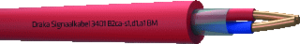 Draka 3400 BM data- en communicatiekabel, mantel rood, CPR Eurobrandklasse volgens EN 1350 B2ca, samenstelling geleider klasse 1 = massief, halogeenvrij volgens IEC 60754-1, halogeenvrij volgens IEC 60754-2, 2 aders, getwist per twee, UV-bestendig, adercodering kleur, aderisolatie polyolefine,