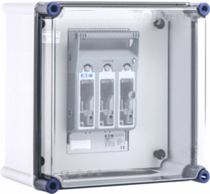 Eaton Industries Halyester schakelveilighedenkast, (bxdxh) 171x270x270mm, beveiliging mespatroon, nom. (meet)stroom 160A, 1 groep, 3 polen, beschermingsgraad (IP) IP66, behuizing kunststof, nom. (meet)spanning 690V, plaatsing t.o.v. railsysteem universeel