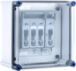 Eaton Industries Halyester schakelveilighedenkast, (bxdxh) 171x270x270mm, beveiliging mespatroon, nom. (meet)stroom 160A, 1 groep, 4 polen, beschermingsgraad (IP) IP66, behuizing kunststof, nom. (meet)spanning 690V, plaatsing t.o.v. railsysteem universeel
