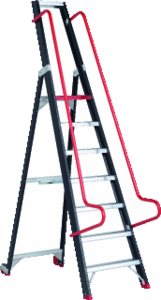 Altrex Enkel Oploopbare Trappen Taurus trap, aluminium/zwart gecoat, 7 stappen/niveaus, stahoogte 165cm, norm NEN 2484, gewicht 18kg, rubber voeten, steunbeugel, vaste wielen achterrek