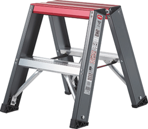Altrex Dubbel Oploopbare Trappen Falco trap, aluminium. geanodiseerd, 2 stappen/niveaus, dubbele optrede, stahoogte 45cm, norm NEN 2484 & EN 131, gewicht 3.3kg, rubber voeten