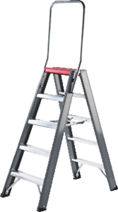 Altrex Dubbel Oploopbare Trappen Falco trap, aluminium. geanodiseerd, 5 stappen/niveaus, dubbele optrede, stahoogte 120cm, norm NEN 2484 & EN 131, gewicht 10.1kg, rubber voeten, steunbeugel